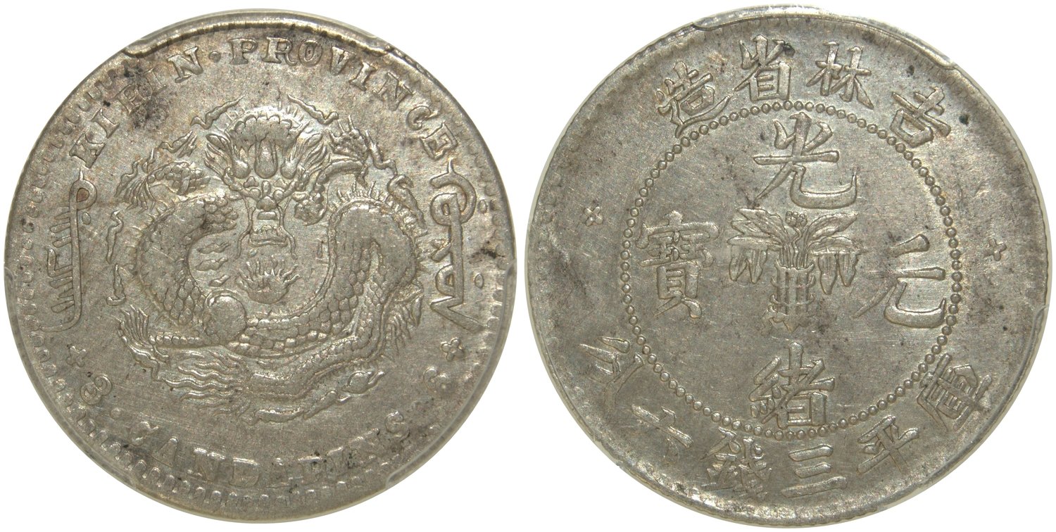 China, Kirin Province,silver 50 cents, ND(1898), Guangxu era,dragon on obverse, Manchurian character left and right,reverse flower basket at centre,