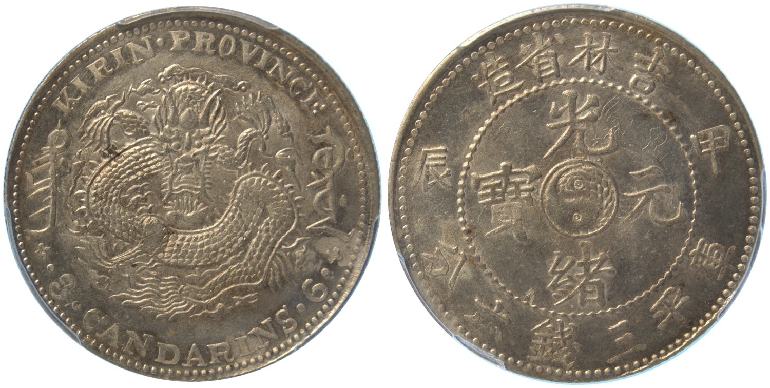 Kirin Province, silver dragon dollar, 1904, PCGS UNC Details.