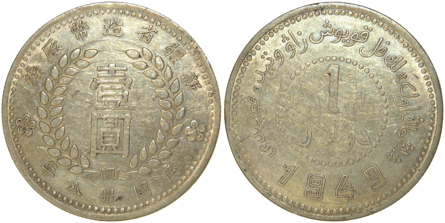 Sinkiang Province, silver sar (tael), 1949, good very fine, lightly cleaned in the past