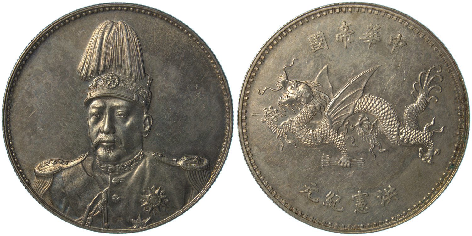 China, Republican era, silver medal, 1916, commemorative of Hong Xian,Yuan Shih Kai on obverse, flying dragon on reverse,