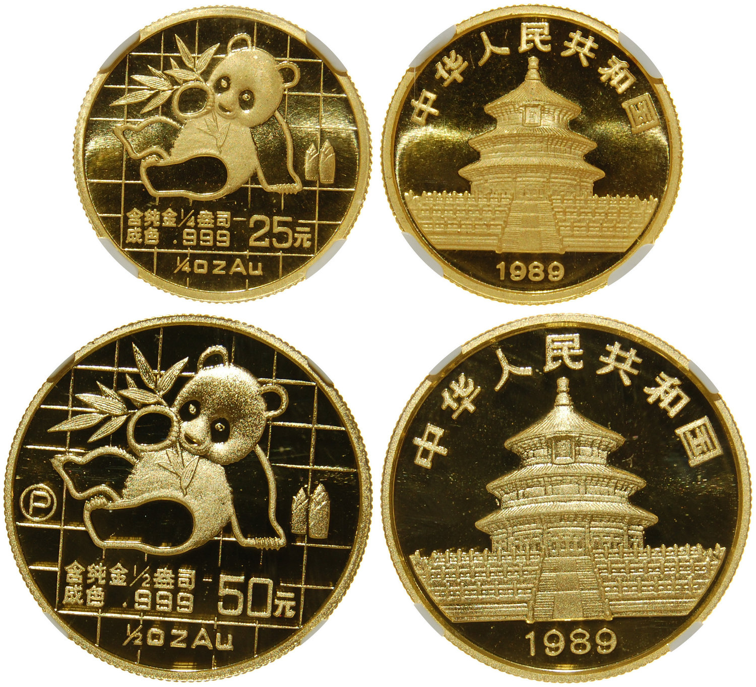 Gold Panda, 1/4, 1/2oz gold, NGC MS69 and PF69 respectively. (2)