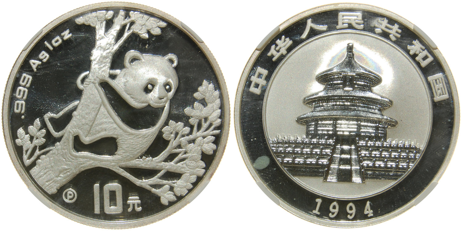 China, People's Republic, 10yuan, 1994‘Proof’, Silver Panda,