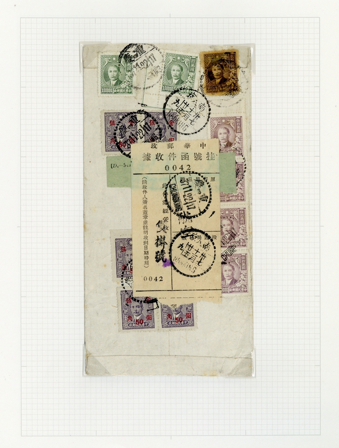 A group of covers with Gold Yuan stamps used in combination with C.N.C. surcharges which include registered and air mail (2); some good frankings of these combination covers. (7 covers)