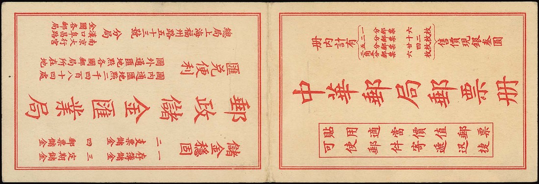 1934 $3 booklet with red on cream cover, complete with all eight panes; good to fine. Chan Booklet 17; S.G. SB9, £5000. Photo