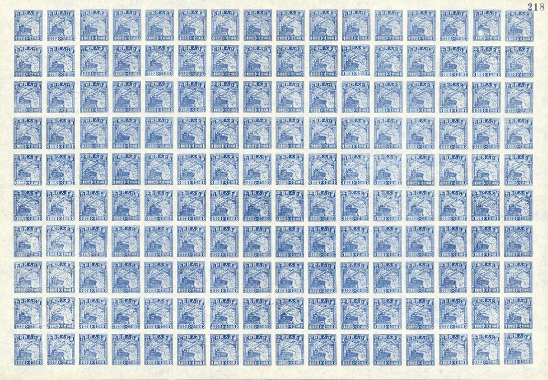 1949 $100 blue, two complete sheets in different formats showing the different types including the scarcer type D, plus four part sheets. Fine, unused without gum as issued. Yang NW37; S.G. NW98; J.P.S. SX34. (670)