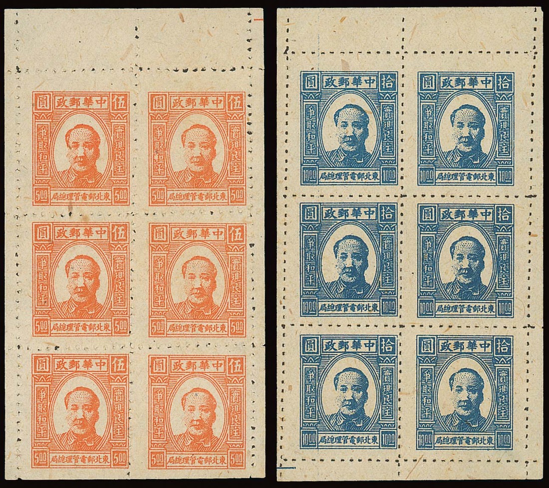 — $5 orange and $10 blue in booklet panes of six, fresh and fine unused without gum as issued. Scarce. Yang NE3a, 4a; J.P.S. DBBP5-6. Photo