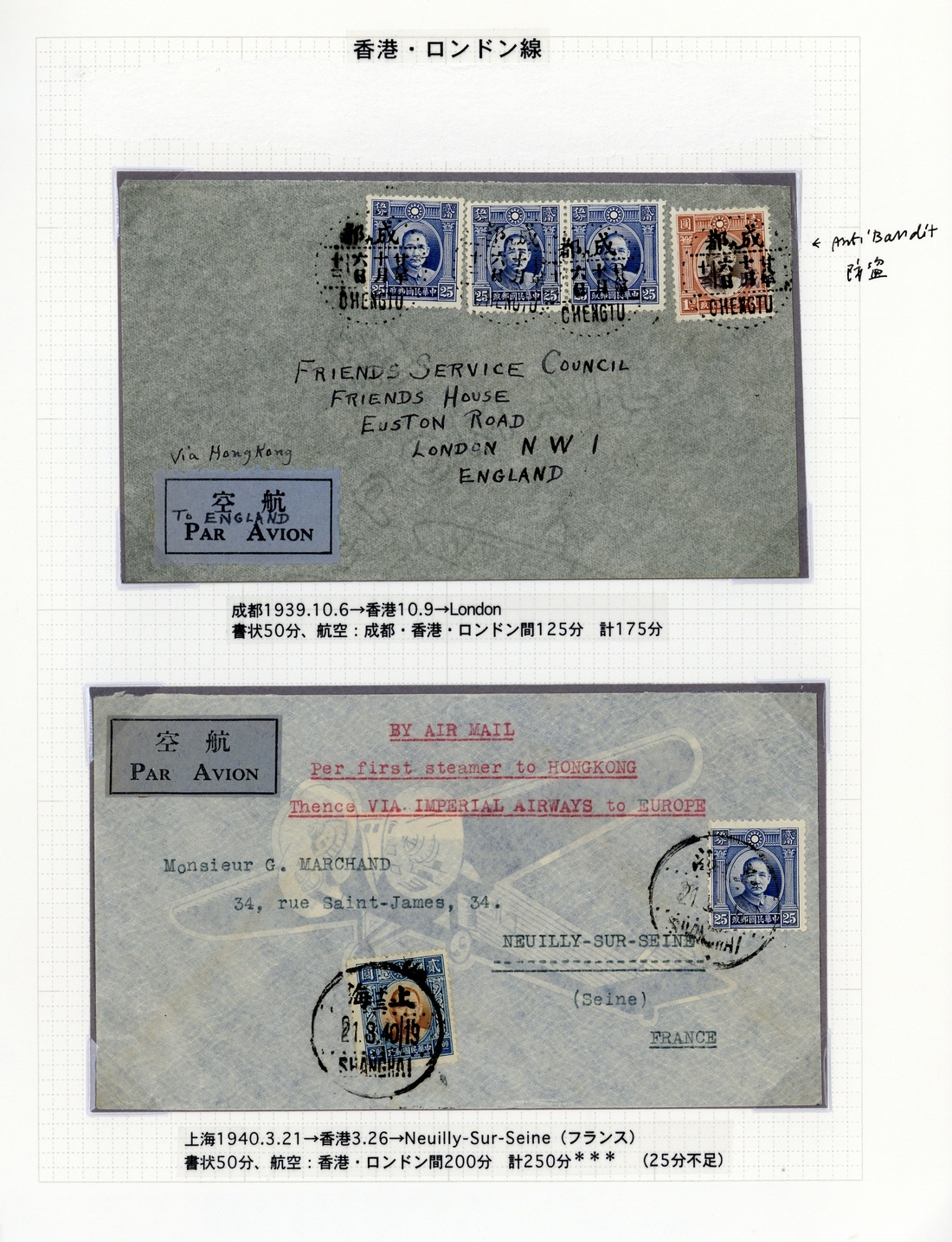 1936-39 a group of covers to Europe or U.S.A. (2) showing different frankings between 65c. and $8.50 (two adhesives missing). A good group. (8 covers)