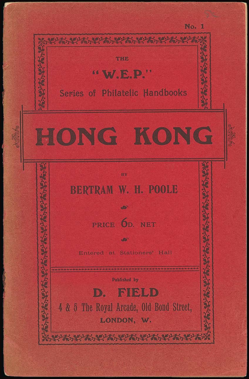The Postage Stamps of Hong Kong, Bertram W.H. Poole, 1908; The "W.E.P." Series of Philatelic Handbooks, no.1. There is some ageing along the spine edge and the front cover is loose, nevertheless in remarkably fine condition for this early and rare publication. Photo