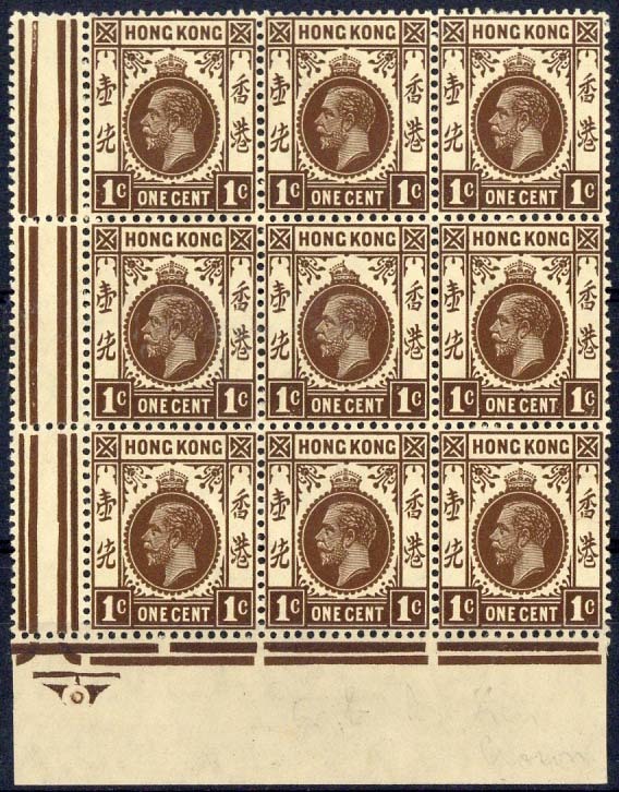 1c. black-brown, variety Crown broken at right, in an interpanneau corner block of nine, unmounted mint; very slight gum ageing. S.G. 100b, £250