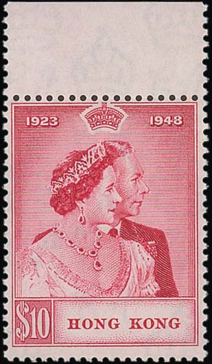 1948 Royal Silver Wedding 10c. and $10, unmounted mint; $10 with top margin. Fine. S.G. 171-172. Photo