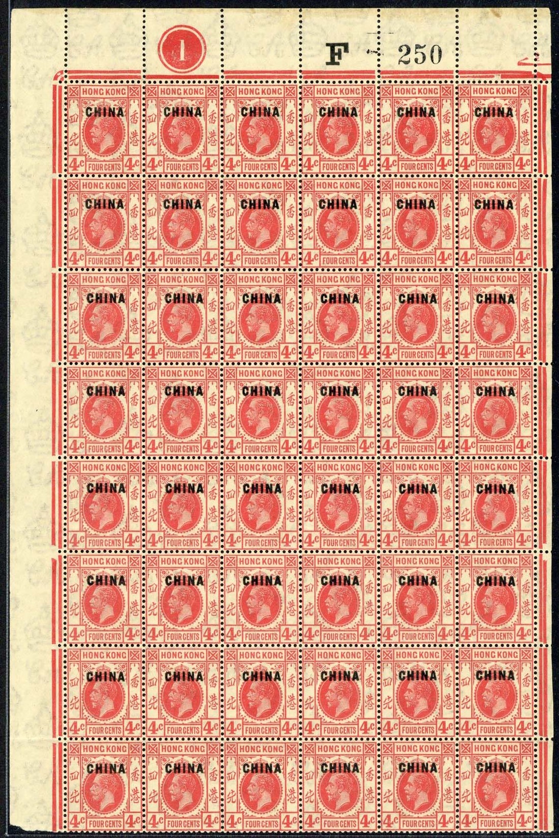 4c. carmine-rose in a block of forty eight, Requisition Letter "F" with margins on three sides, sheet number "F 250", unmounted mint. A desirable block