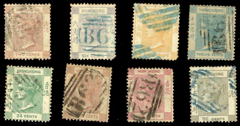 A group of 1863-71 watermark crown CC Crown issues with values to 96c. cancelled by "B62" in blue or black, 8c. with "S1" in blue; mixed condition (8)