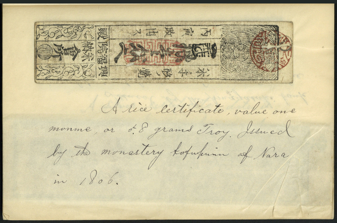 Japanese Hansatsu, a group ranging from 1730-1797 including Yamato Province, Mikawa Province Tambo, Bungo Oka-Han, and an annotated booklet including eleven hansatsu notes, all vertical format