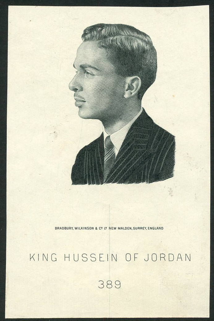(x) Jordan, a vignette of King Hussein, black and white, similar to that used on the series of 1952 but subtly different in facing and angle,