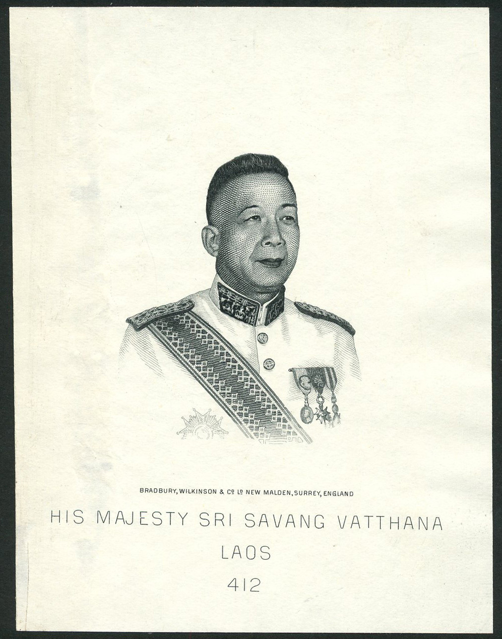 (x) Banque Nationale du Laos, a vignette of King Sri Savang Vatthana, black and white, as used on the issues of 1963,