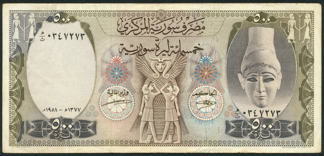 Central Bank of Syria, a group from the 1958 issue comprising £25 blue, £50 (2), red, £100 (5), green, £500, brown and purple, all with Khaled Bey El Azem, Izzat Trabulsi signatures, £100 (3),