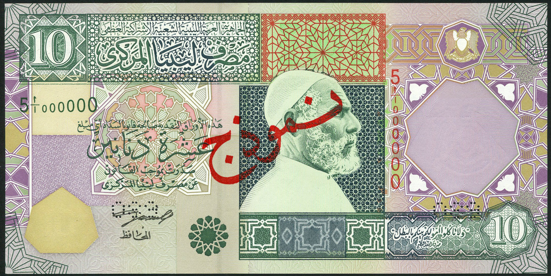 Central Bank of Libya, Socialist People's Republic, a specimen set from the 2002 issue comprising 1, 5 and 10 dinars, all multicolour with Mohamoud Zilitni signature and red SPECIMEN overprint in Arabic