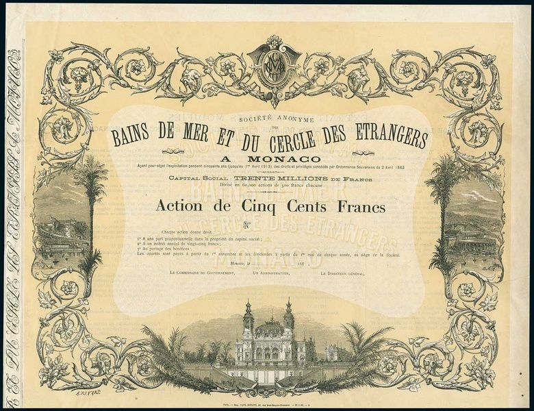Bains de Mer et du Cercle des Etrangers à Monaco. Action F500, Monaco 188[.], unissued. together with a postcard of Monte-Carlo 1904. EF.