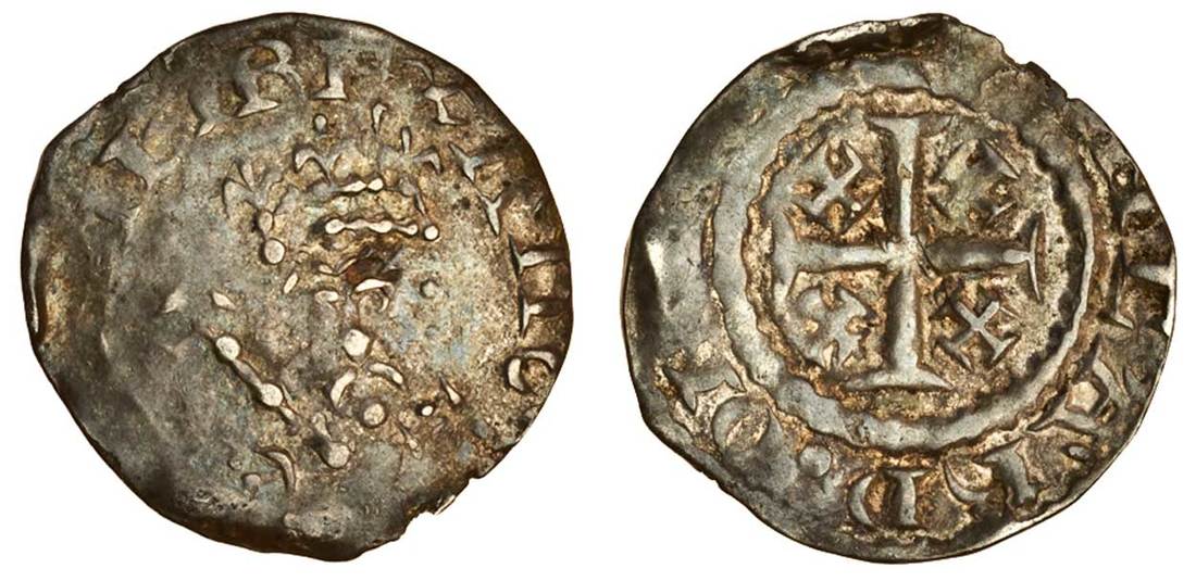 Henry II (1154-1189), ‘Tealby’ coinage, 1158-80, Penny, 1.28g, class A1, Bristol, Tancard, facing crowned bust, sceptre top left, rev. [ ]ncard:on[ ], cross potent with a small cross potent in each angle (BMC 11; N952/1; S.1337), good fine the reverse better, rare