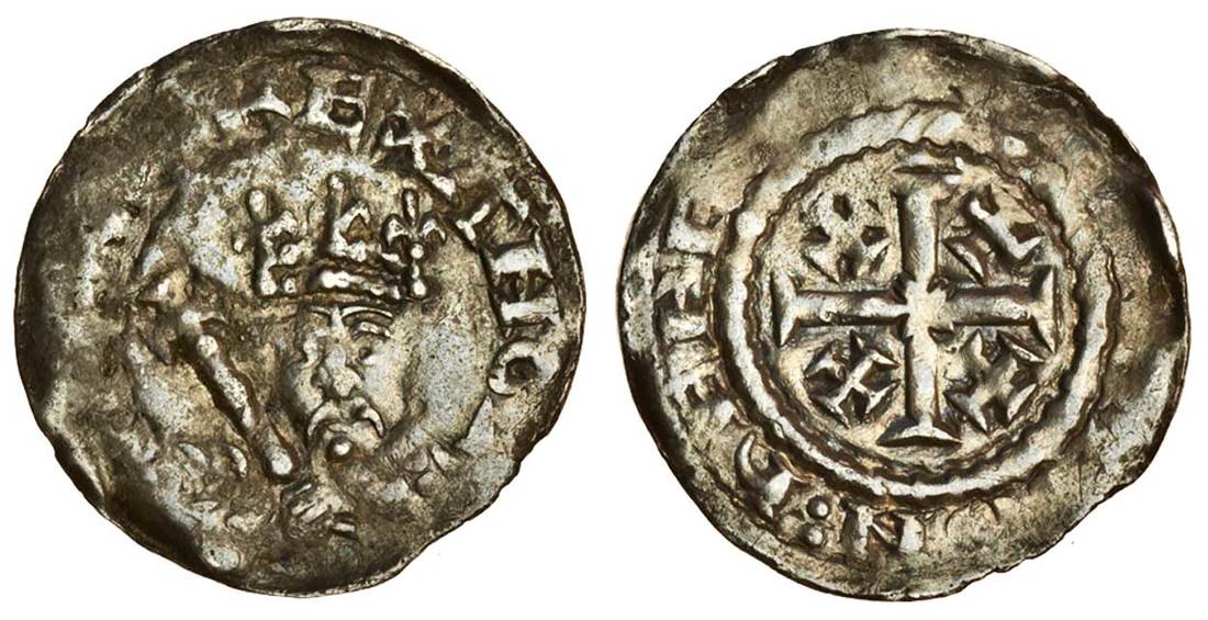 Henry II (1154-1189), ‘Tealby’ coinage, 1158-80, Penny, 1.37g, class A1, Hereford, Stefne, facing crowned bust, sceptre top left, rev. [ ]ne:on:herf[ ], cross potent with a small cross potent in each angle (BMC 290; N952/1; S.1337), slightly flat in the legends, good fine, very rare