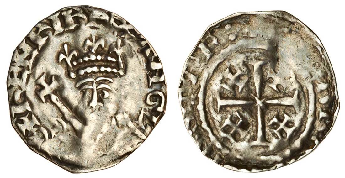 Henry II (1154-1189), ‘Tealby’ coinage, 1158-80, Penny, 1.16g, class A1, Stafford, Colbrand, facing crowned bust, sceptre top left, rev. +[ ]bra[ ]n:staf:, cross potent with a small cross potent in each angle (BMC 703b; N.952/1; S.1337), slightly small (clipped?),almost very fine, extremely rare