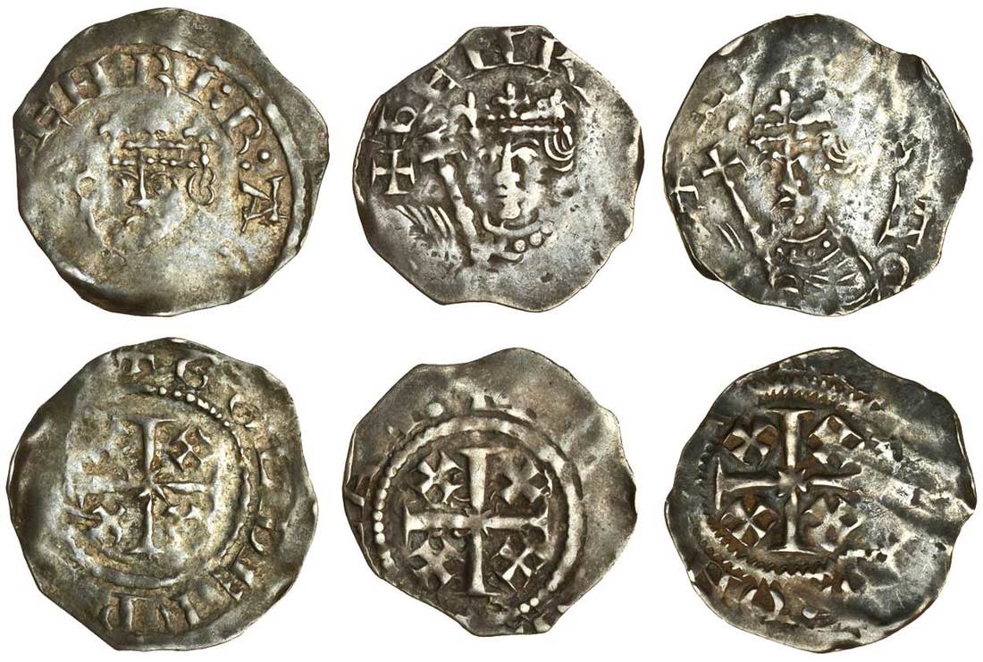Henry II (1154-1189), ‘Tealby’ coinage, 1158-80, Pennies (3), Canterbury, class C1, 1.51g, Goldeep, +goldeep:[ ], partly flat and struck off-centre, toned, good fine, 1.40g, Ricard, +[ ]rd:[ ]can:, the legends virtually flat, a good portrait, nearly very fine, 1.37g, Willem, [ ]:on[ ], a nice portrait, toned, good fine, (BMC -/76, 180/-, 180-1a; N.956; S.1339), the third a rare moneyer (3)