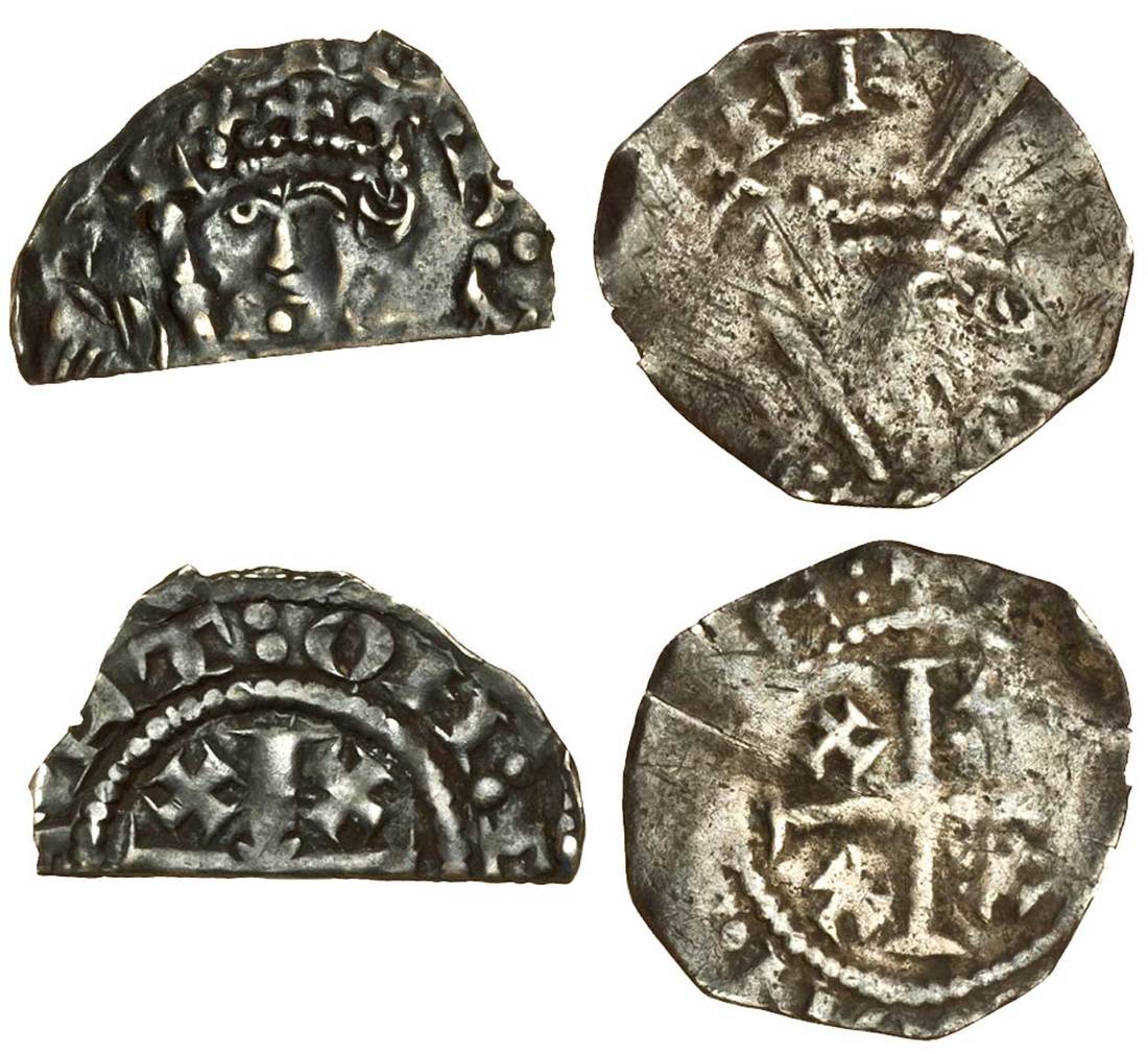 Henry II (1154-1189), ‘Tealby’ coinage, 1158-80, Exeter, Cut Halfpenny (1), class C, 0.72g, Ricart, [ ]art:on:e[ ], dark tone, very fine, Penny (1), class D, 1.12g, Rogier, rev, +r[ ]on:[ ]e:, small, near fine (BMC -, 270-1; N.956, N.958/1; S.1339, S.1340), the first a new class for the moneyer, Exeter, a rare mint (2)