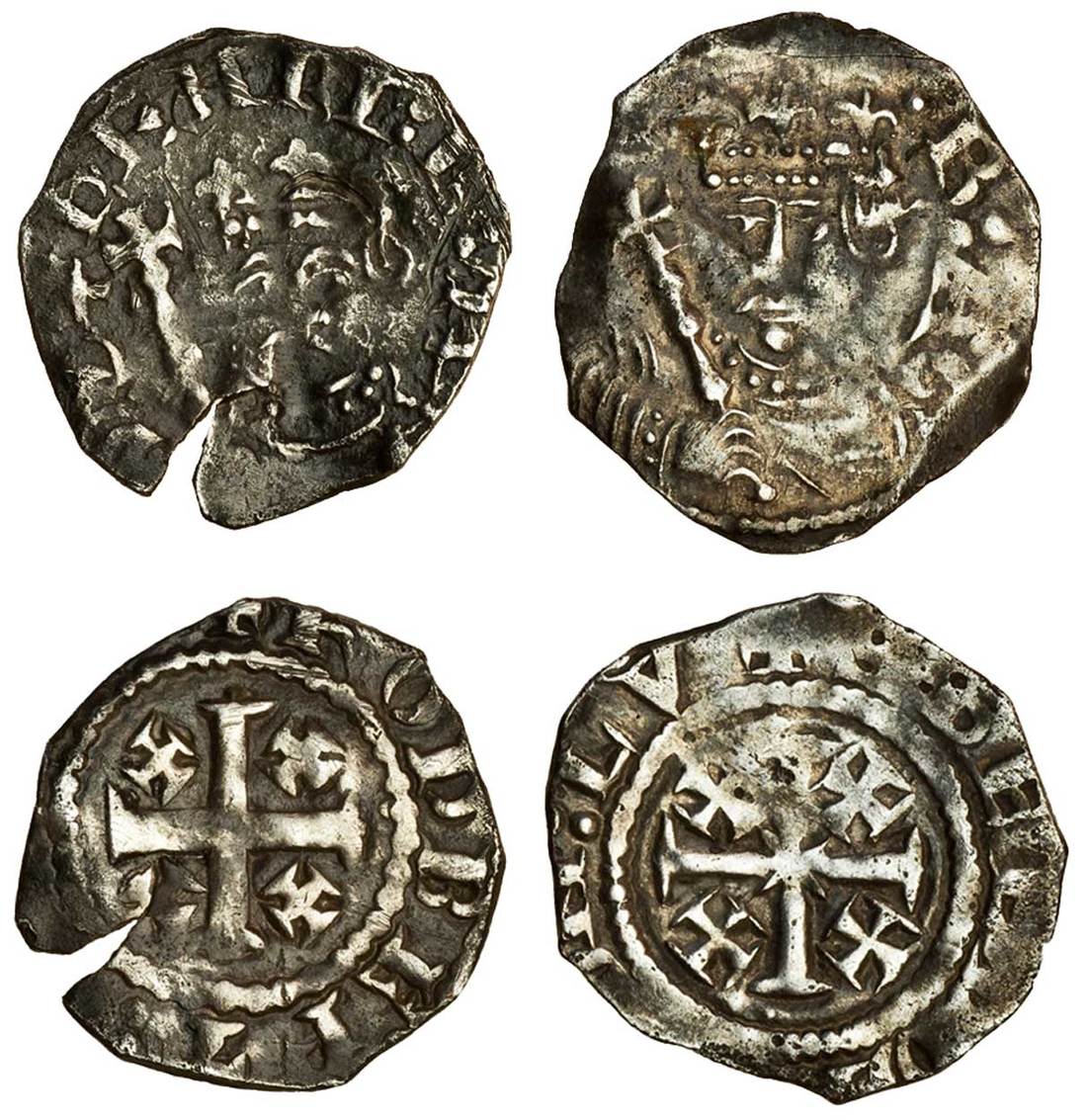 Henry II (1154-1189), ‘Tealby’ coinage, 1158-80, Pennies (2), London, class C1var, 1.42g, Rodbert, the bust with beaded mantle, rev, +rodbert:o[ ], obverse scratched and an edge crack, good fine, class C2, 1.43g, Swetman?, +ssee??[ ]on:lv, a decent portrait, the reverse slightly porous, good fine (BMC -, -; N.956, N.957; S.1339), the second moneyer not known for C2, both worthy of further research, both rare (2)