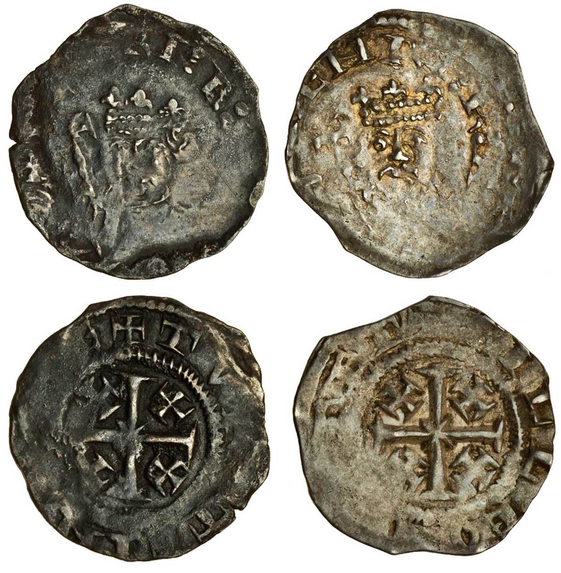 Henry II (1154-1189), ‘Tealby’ coinage, 1158-80, Pennies (2), Thetford, class C1 (2), 1.43g, Turstain, +tvr[ ]tein[ ]e, the obverse weak, the reverse better, fair/almost fine, 1.44g, Willem, the hair omitted, +pillem[ ]tet, flat in parts, almost fine (BMC 724, 736/728-30; N.956; S.1339), the second a rare variety (2)