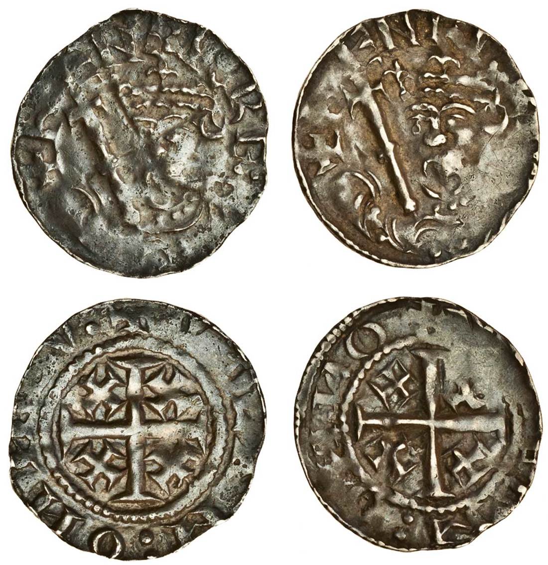 Henry II (1154-1189), ‘Tealby’ coinage, 1158-80, Pennies (2), Newcastle, Willem, E3/C, 1.42g, +wilam:oи:иev:, a little soft on the face, the reverse well struck, almost very fine, class E3 1.40g, +wilelm:oи:иo, flat areas to both sides, nearly very fine (BMC 603-5/592b, 604; N.960/3; S.1341), obverse dies of Carlisle and Newcastle were regularly interchanged (2)