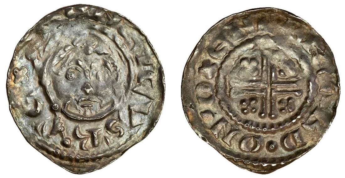 Henry II (1154-1189), ‘Short Cross’ coinage, 1180-89, Penny, 1.41g, class 1c, Oxford, Ricard, bust facing of cruder style, crowned and with sceptre, rev. +ricard•on•oxen, short cross voided with quatrefoil in each angle, toned, almost very fine (N.964; S.1345; SCBI 56/638 this coin; Stewartby Ic), Oxford is an extremely rare mint for 1c