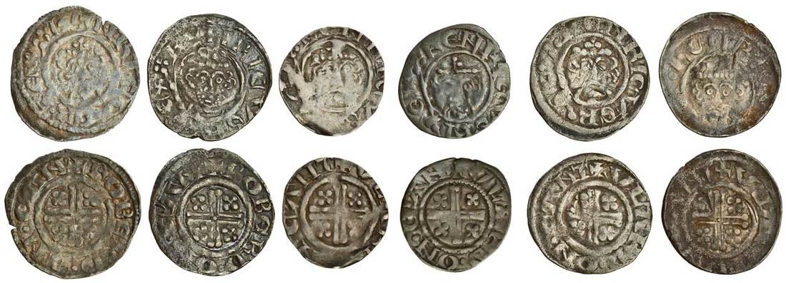 Richard I (1189-1199), ‘Short Cross’ coinage, Pennies (6), class 4a, Canterbury, Roberd (2), rev. +roberd•on•can, 1.40g, toned with a weak portrait, nearly fine, 1.26g, fine or better, Ulard (4), rev. +vlard•on•cant, 0.99g, clipped, near fine, 1.20g, obv. henricvsri/ex, softly struck, about fine, 1.24g, scratches, fine, 1.42g, struck off-centre, fair (N.968/1; S.1348A; Stewartby IVa), (6)