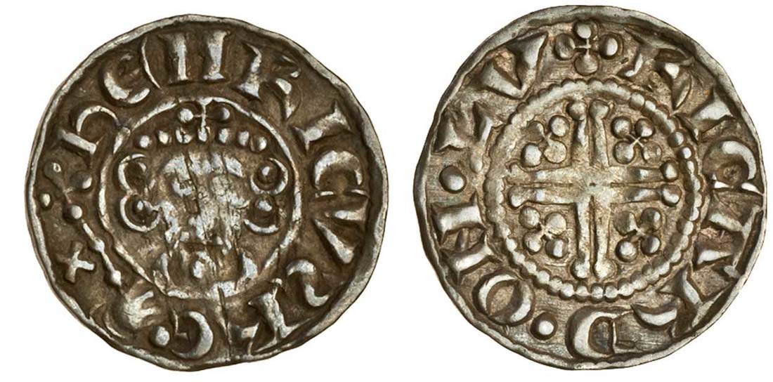 John (1199-1216), ‘Short Cross’ coinage, Penny, 1.40g, class 5aí2, London, Ricard, neat bust with sceptre left, hair composed of two or more curls either side, initial cross pommée, reversed S in legend, rev. +ricard•on•lv, short cross voided with quatrefoil in each angle (N.969; S.1350B; Stewartby Va2), a strong strike, obverse flaw, almost good very fine, rare