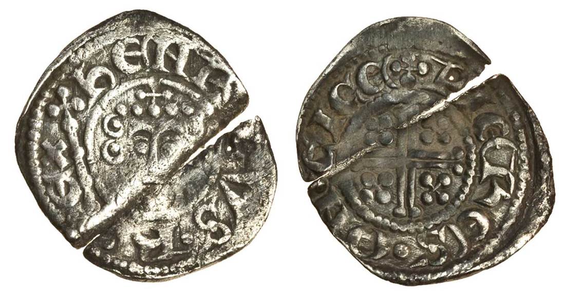 John (1199-1216), ‘Short Cross’ coinage, Penny, class 5bí1/5aí2 mule, 1.30g, Chichester, Pieres, rev. +pieres•on•cice, badly cracked, good fine, the reverse better (N.969/N.970; S.1350C; SCBI 56/1293 this coin; Stewartby Vb1/a2), possibly still a unique mule for this moneyer