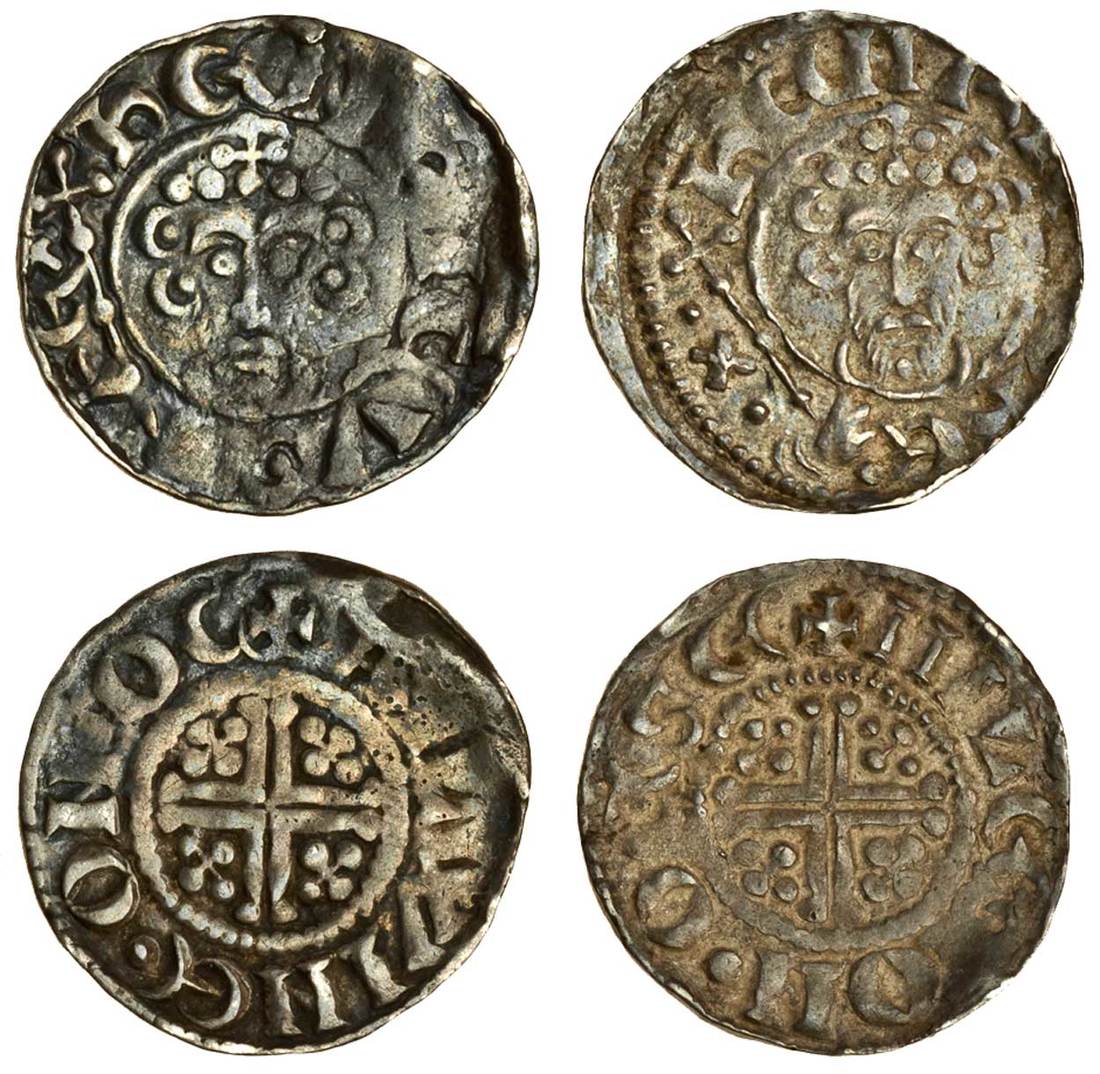 John (1199-1216), ‘Short Cross’ coinage, Pennies (2), class 5bí1, Oxford, 1.43g, Ailwine, obv. reads /rex, rev., +ailwine•on•oc, cracked, fine, 1.43g, Miles, rev. +miles•on•ocse, struck slightly off-centre on the obverse, attractively toned, nearly very fine (N.970; S.1351; Stewartby Vb1), a scarce mint (2)