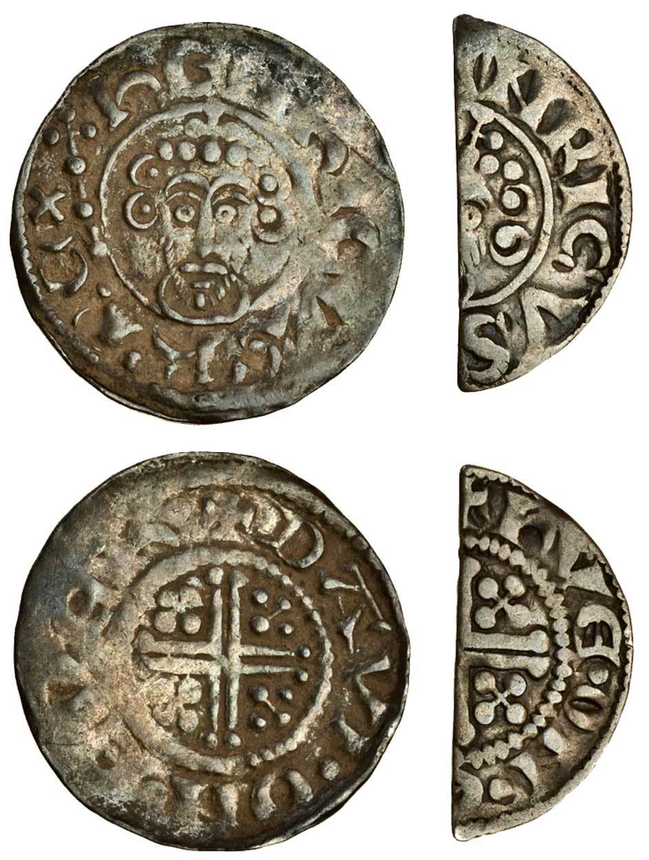 John (1199-1216), ‘Short Cross’ coinage, Penny, class 5bí1, York, 1.45g, Davi, rev., +davi•on•ever•, soft in part of the legend, almost very fine, Cut Halfpenny, 0.64g, Hve, rev. +hve•on•e[ ], nearly very fine (N.970; S.1351; Stewartby Vb1), (2)