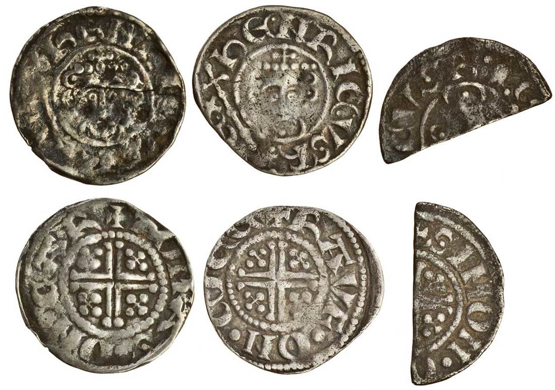John (1199-1216), ‘Short Cross’ coinage, Pennies (2), class 5bí2, Carlisle (1), 1.11g, Tomas, rev., +tomas•on•car, cracked, fine, Chichester (1), 1.36g, Ravf, obv. ornamental letters, rev. +ravf•on•cice, slightly flat on the face, otherwise fine, Cut Halfpenny, 0.71g, Chichester, Simon, rev. +simon•[ ], good fine, (N.970; S.1351; Stewartby Vb2), the second extremely rare with the ornamented letters, the last is a reverse die duplicate of Mass 1478, Chichester is a scarce mint (3)
