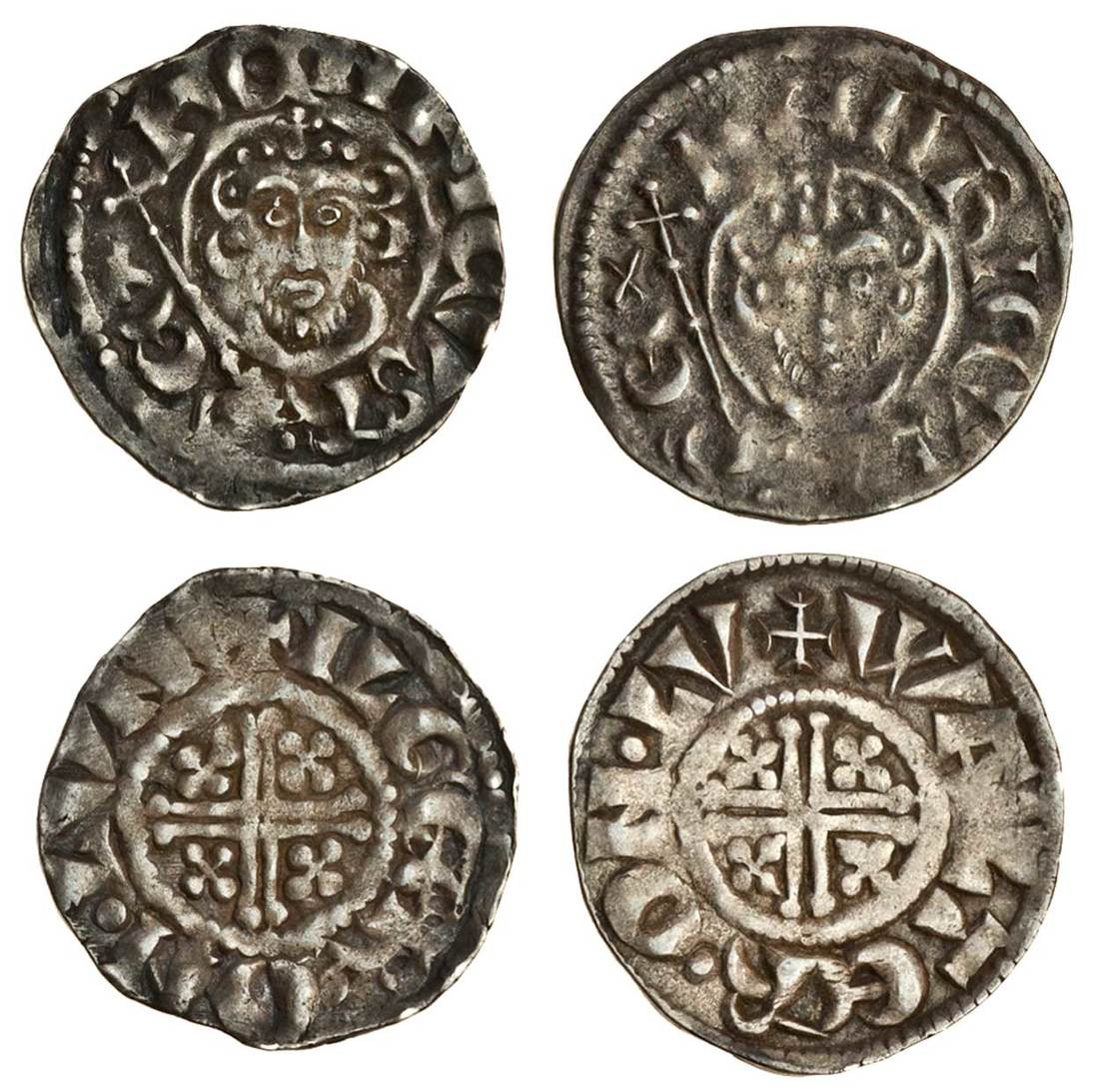 John (1199-1216), ‘Short Cross’ Coinage, Pennies (2), class 6aí1, London, 1.38g, Ilger, rev. +ilger•on•lvnd, better than good fine, 1.46g, Walter, +walter•on•lv, strictly only fine on account of the facial weakness, but a full round coin, well struck up in parts and attractive with sharp detail (N.974/1; S.1353), the second has the initial mark appearing as a cross patonce, thus it is possible to understand how the mark was fashioned (2)