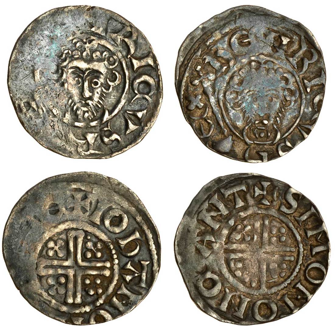 Henry III (1216-1272), ‘Short Cross’ Coinage, Pennies (2), Canterbury, Class 6d, Iohan, 1.40g, rev. +iohan•on[ ]e, extra pellet in one quarter of the reverse, flat in parts, the reverse off-centre, a strong portrait, nearly very fine, Simon, 1.41g, rev. +simononcant, toned, good fine (N.977; S.1355C; Stewartby VId), the first rare with the extra pellet (2)