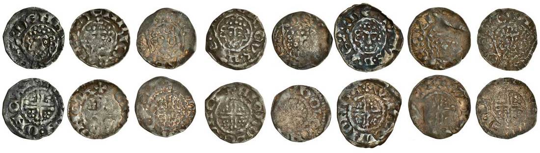 Henry III (1216-1272), ‘Short Cross’ Coinage, Pennies (8), Canterbury, Class 8bí3 (8), Iohan (3), 1.35g, +iohan•oncan, dark tone, good fine, 1.44g, +ioh[ ]onca, rather flat, fair, 1.50g, +iohanoncant, toned and weak, near fine, Nichole (2), 1.37g, +nichole•onca, struck on a small flan, fine, 1.45g, [ ]choleon[ ], flat in parts, otherwise fine, Willelm (3), 1.41g, +willelmonca, blotchy toning, nearly very fine, 1.44g, +wil[ ]ca, near fine, 1.38g, +willelmonca, round, fine (N.981/3; S.1357C; Stewartby VIIIc), (8)