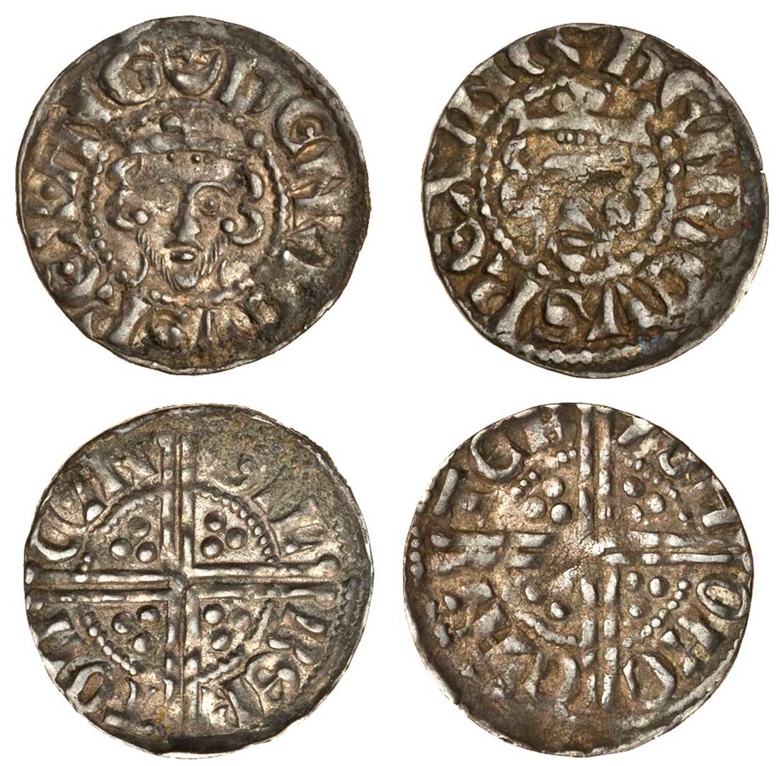 Henry III (1216-1272), ‘Long Cross’ Coinage, Pennies (2), Canterbury, Phase 1, Class 1b/2a mule, Gilbert, 1.42g, obv. i.m.1, henricvs rex•ang, five dots below crown, rev. gil ber ton can, three pellets around a central point in each angle, residual deposits, very fine, Ion, 1.40g, obv. no stop after rex, rev. ioh ohc can ter, nearly very fine (N.984/N.985/1; S.1360; Stewartby Ib/IIa), both rare (2)