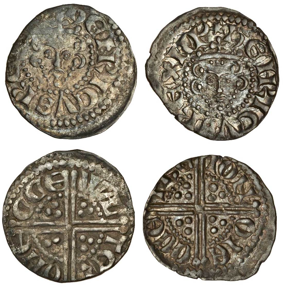 Henry III (1216-1272), ‘Long Cross’ Coinage, Pennies (2), Exeter, Phase 2, Class 3a1 (2), Walter, 1.60g, rev. wal ter ohe cce , the obverse off-centre, toned, almost very fine, Ion, 1.47g, rev. ion one cce tre, struck off centre, iridescent and practically as struck (N.986; S.1362; Stewartby IIIa1), (2)