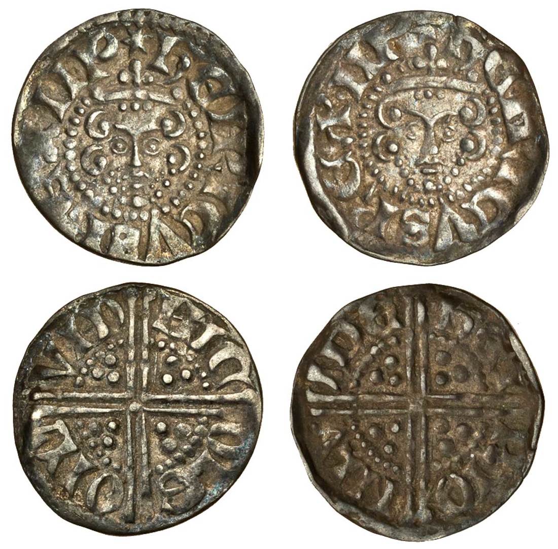 Henry III (1216-1272), ‘Long Cross’ Coinage, Pennies (2), London, Phase 2, Class 3abí1, Nicole, 1.32g, rev. hic ole ohl vhd, very fine or slightly better, Class 3abí2, Henri, 1.45g, obv. ornate X, rev. hen rio nlv nde, dirt in the devices, otherwise very fine (N.986/1; S.1362B; Stewartby IIIab1, IIIab2), (2)