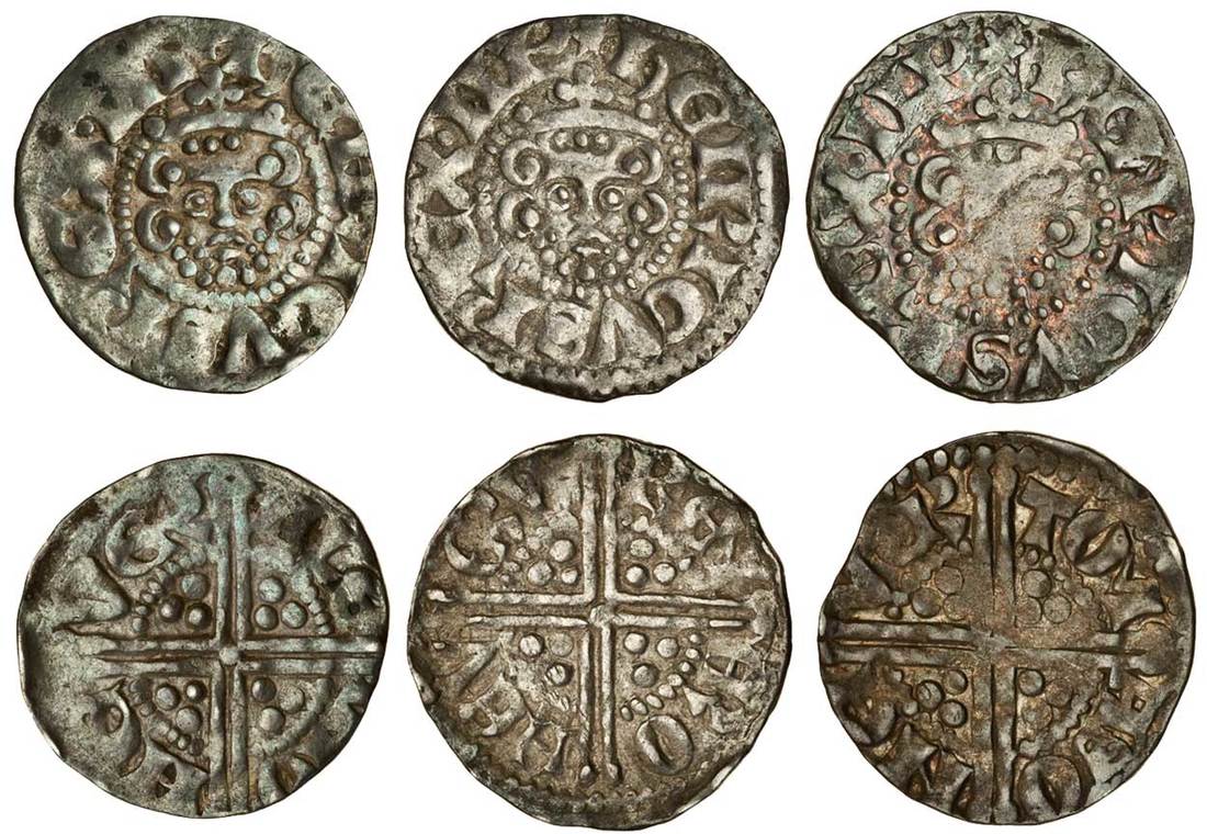 Henry III (1216-1272), ‘Long Cross’ Coinage, Pennies (3), York, Phase 2, Class 3b (2), Alein, 1.44g, rev. ale ino ne ver, slightly small with peripheral weakness, but not clipped, almost very fine, Rener, 1.40g, rev. ren ero nev erw, nearly very fine, Class 3bc, Tomas, 1.31g, rev. tom aso ne ver, strong toning,weak portrait, otherwise nearly very fine (N.987, N987/1; S.1363, S.1363A; Stewartby IIIb, IIIbc), (3)