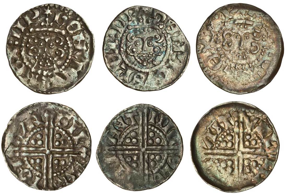 Henry III (1216-1272), ‘Long Cross’ Coinage, Pennies (3), Canterbury, Phase 2, Class 3c, Gilbert, 1.37g, rev. gil ber toh can, darkly toned very fine, Nicole, 1.28g, rev. nic ole onc ant, dark toning with flat legends in parts, a pleasing overall very fine, Willem, 1.45g, wil lam onc ant, iridescence, almost very fine (N.988; S.1364; Stewartby IIIc), (3)