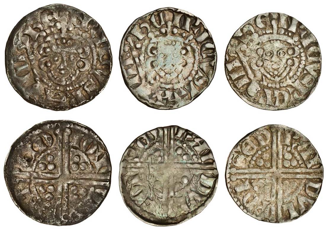 Henry III (1216-1272), ‘Long Cross’ Coinage, Pennies (3), Phase 3, Class 5aí2, Bury St. Edmunds, Ion, 1.25g, rev. ion ons ant ed, some porosity, otherwise almost very fine, Class 5b2, Randvlf, 1.26g, rev. ran dvl fon s’ed, a weak portrait, fine, Class 5cí2, Randvlf, 1.52g, rev. ran dvl fon s’ed, good fine (N.991/2, N.992/2, N.993; S.1367A, S.1368A, S1369; Stewartby Va2, Vb2, Vc2, the third, pl.3/71 this coin) (3)