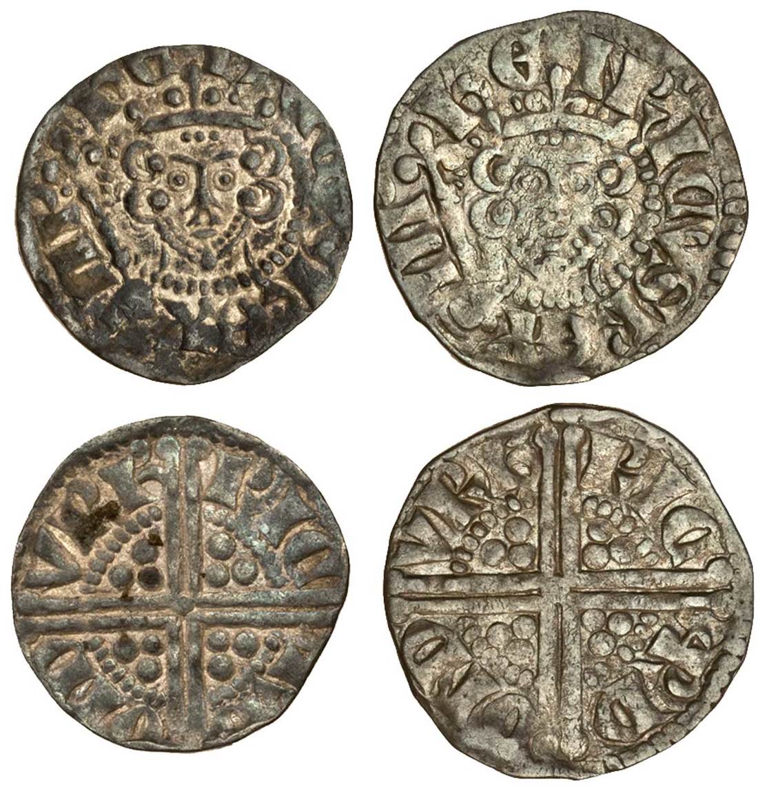 Henry III (1216-1272), ‘Long Cross’ Coinage, Pennies (2), Phase 3, Class 5aí3, Durham, Ricard (2), rev. ric ard ond vrh’, 1.51g, minimal wear, better than very fine, Class 5bí2, 1.49g, toned, almost very fine (N.991/3, N.992/2; S.1367A, S.1368A; Stewartby Va3, Vb2, the first, pl.3/68 this coin), both rare (2)