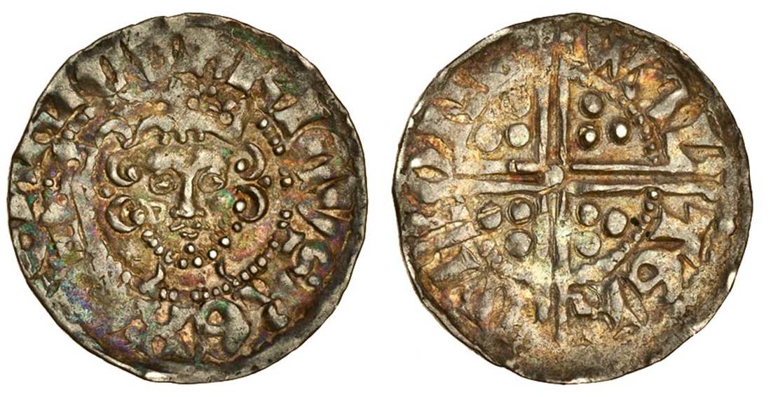 Henry III (1216-1272), ‘Long Cross’ Coinage, Penny, Phase 3, Canterbury, Class 5dí3, central fleur with pointed ends, Walter, 1.48g, rev. wal ter onk, multi-hued toning, the reverse double-struck, otherwise a bold very fine (N.994; S.1370A; Stewartby Vd3), a coin with much eye-appeal