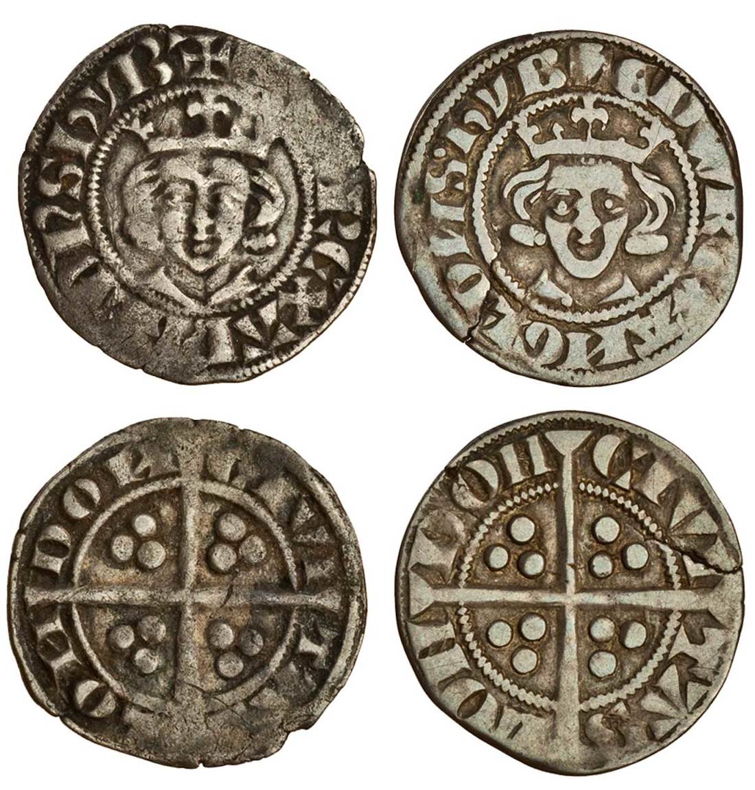 Edward I (1279-1307), New Coinage, Pennies (2), London, Class 1a/1c mule, crowned facing bust, rev. civi tas lon don, small lettering, about fine, Class 1c/1a mule, crowned facing bust, small lettering, rev. double barred Ns, edge crack at 8 o’clock, near fine (N.1010/N.1012, N.1012/N.1010; S.1380/S.1382, S.1382/S.1380; Stewartby p.170, Ia/c, Ic/a), both rare