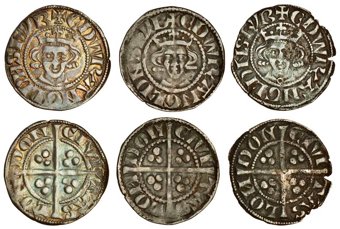 Edward I (1279-1307), New Coinage, Pennies (3), London, Class 1d/1c mule, 1.45g, obv. +edwr’angldиshyb, rev. small lettering, tiny edge split at 3 o’clock, golden tone, nearly very fine, Class 1d, large lettering, 1.40g, obv. second N reversed, about fine, 1.15g, variety with annulet below bust, slight edge loss and some surface marks, otherwise fine (N.1013/N.1012, N.1013; S.1383/S.1382, S.1383, S.1384; the first, SCBI 39/39 this coin; Stewartby p.171, Id/c, Id), the first extremely rare, the third rare (3)
